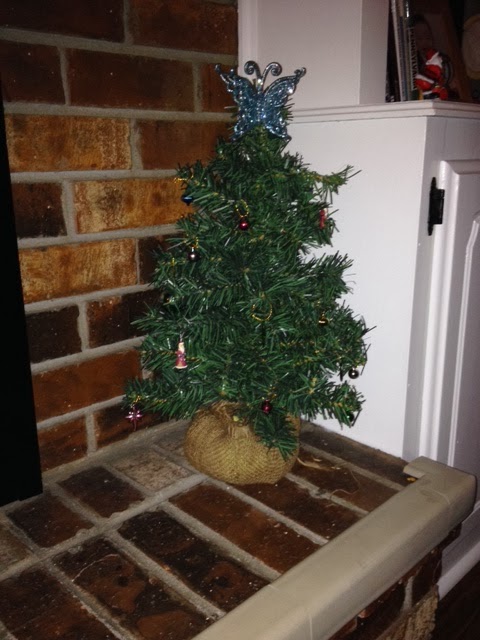 | Out tiny tree for Elliot. Ornaments provided by MomMom and friends. |